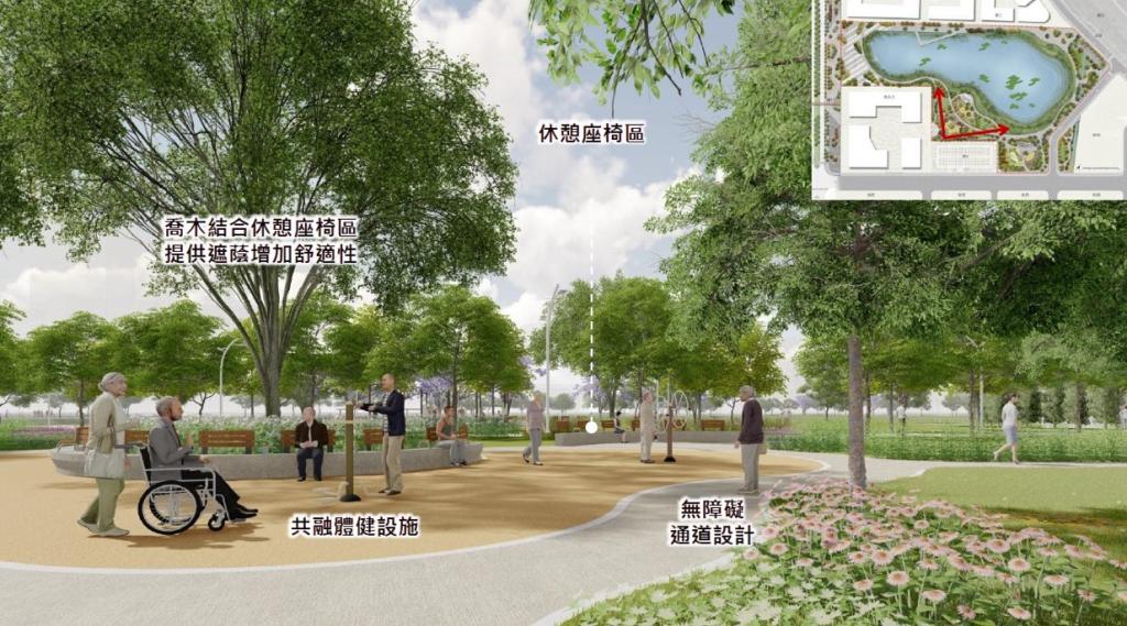 圖說:竹竿埤公園高齡友善設計。( 圖/工務局提供)