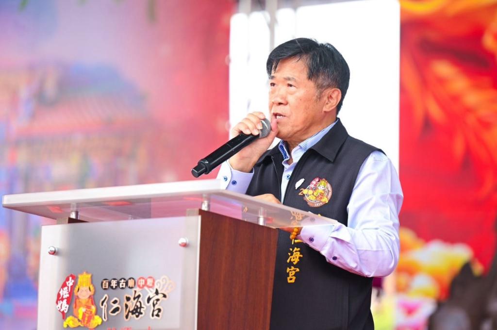 圖說:中壢仁海宮董事長王介禧致詞。( 圖/市府提供)