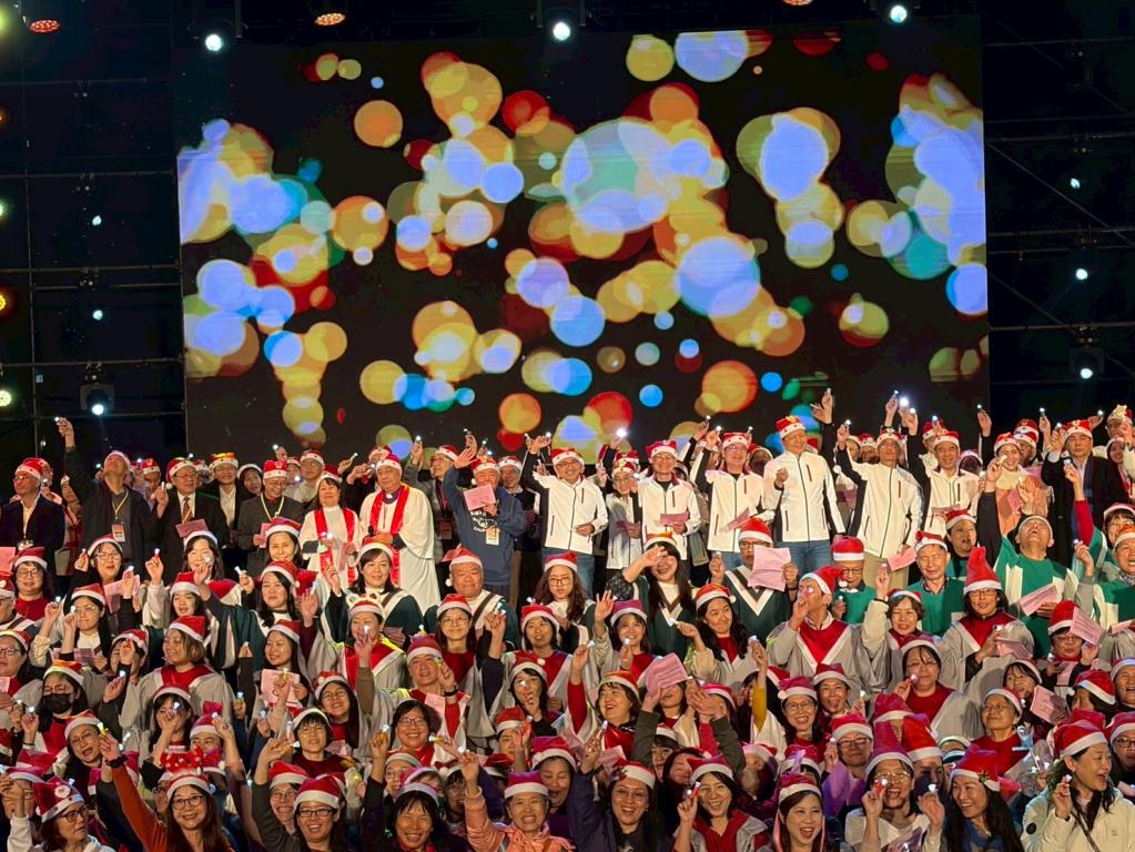 (大成報記者張玉玲/新北報導)2025新北市耶誕平安晚會從今(21)日下午的愛心園遊會到晚間的平安晚會,洋溢濃厚的耶誕氣氛,吸引大批民眾參與。晚間市長侯友宜領銜市府團隊與各教會牧長、百人詩班向萬名遊客報佳音,為城市送暖,與現場民眾一起唱和《普世歡騰》、《平安夜》、《是為了愛》等聖誕詩歌,嘹亮歌聲響遍耶誕城,傳遞愛與祝福。