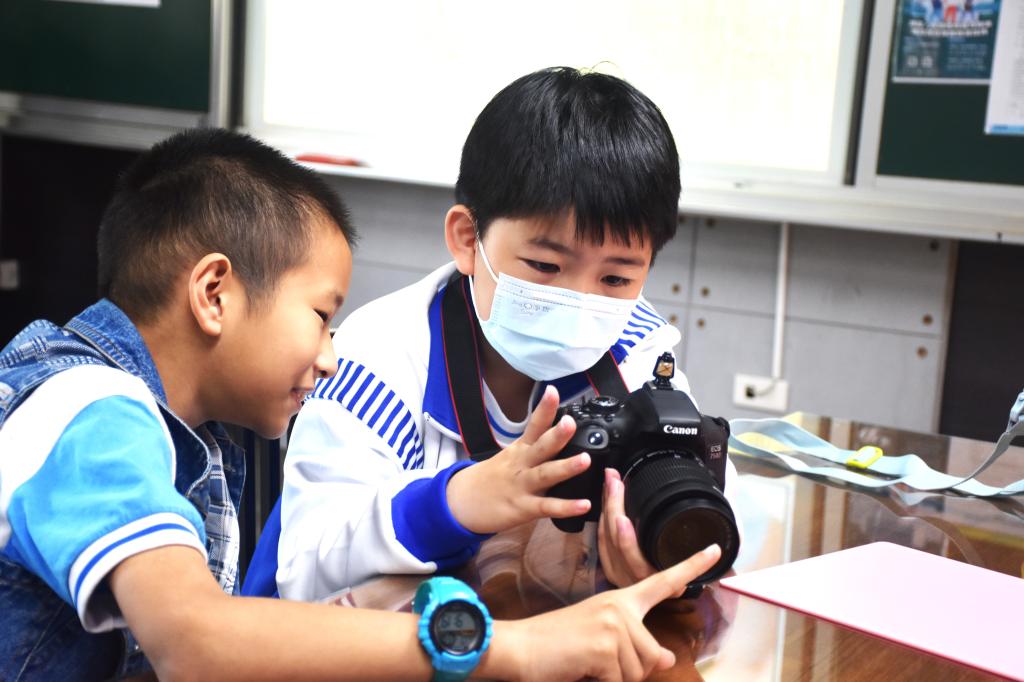 圖說:學生充滿好奇專注於相機操作體驗,學習攝影樂趣。