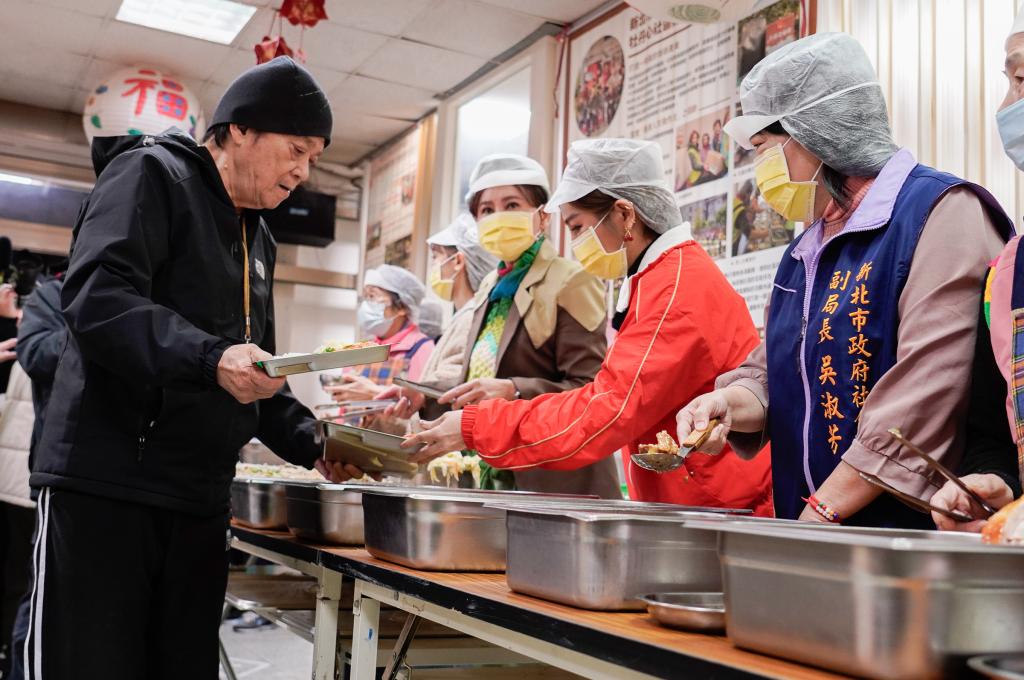 此外,社會局副局長吳淑芳和新莊區長朱思戎,中午也到牡丹心據點和陳亞蘭、王彩樺等人一起幫忙長輩打菜。吳淑芳表示,感謝台灣優質生命協會在歲末天寒之際,專程到據點來關懷長輩。