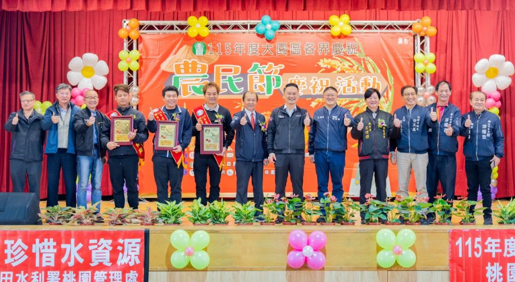 【大成報記者袁慧心/桃園報導】桃園市副市長蘇俊賓今(13)日上午前往大園區,出席「大園區各界慶祝農民節大會活動」,並頒發傑出專業農民、傑出畜牧推廣農民及傑出青年農民等獎項,表揚農友長期投入農業發展的卓越貢獻。蘇俊賓表示,大園區擁有玉米、台農57號及66號甘藷、西瓜、香瓜及蕎麥等多項特色農產,大園區農會不僅生產優質農產品、培育專業農民,在農會金融服務與農產行銷推廣方面也持續深耕,成果有目共睹。
