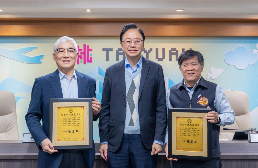 【大成報記者袁慧心桃園報導】桃園市長張善政今(14)日上午主持市政會議,頒發「援助臺北無差別攻擊事件受害者家屬感謝牌」。張市長表示,去(114)年底臺北發生無差別攻擊事件,造成社會高度震驚,其中不幸罹難的余家昶先生為桃園市民,令市府深感不捨。事發後,財團法人中壢仁海宮及財團法人技嘉教育基金會第一時間主動捐款慰問家屬,義舉令人感佩;受贈家屬考量自身經濟狀況尚可,決定將捐款全數回捐市府社會救助金專戶,市府將會妥善運用,延續社會溫暖。