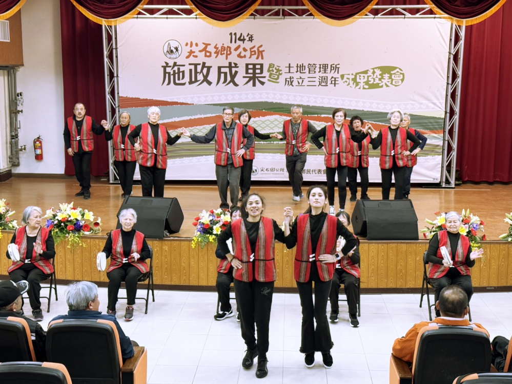 ▲竹縣尖石鄉公所盛大舉辦「新竹縣尖石鄉公所114年施政成果暨土地管理所成立三周年成果發表會」活動,尖石鄉嘉樂文健站舞蹈表演。