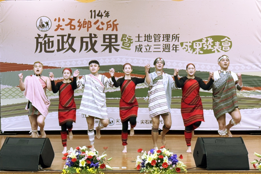 ▲竹縣尖石鄉公所盛大舉辦「新竹縣尖石鄉公所114年施政成果暨土地管理所成立三周年成果發表會」活動,精彩舞蹈表演揭開序幕。