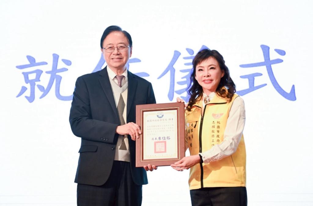 典禮在桃園市長張善政親臨監交下進行,並由桃園市政府警察局局長廖恆裕、各級警政主管、志工夥伴與貴賓共同見證。卸任志工大隊長 何淑子 將象徵責任與榮耀的志工大隊旗正式交接予新任大隊長周矢綾,儀式莊嚴隆重,現場氣氛溫馨感人。