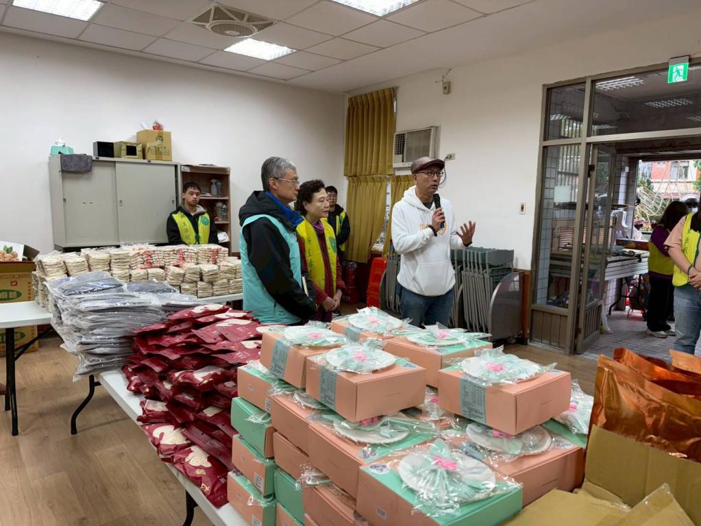 圖說:NPO channel公益平台創辦人張幼霖(右)和三芝區長李天民(右2)一起致贈電鍋、電熱毯和年菜給弱勢戶。