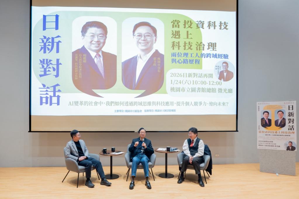 市議員暨桃園市日新協會發起人凌濤指出,協會自成立以來,即以「城市發展、國際視野、青年培育與在地文化」為核心主軸,持續邀請各界重量級講者與青年進行深度對談。此次活動因應半導體供應鏈、AI浪潮及國際經貿情勢變化,特別邀請具科技與治理經驗的張市長,以及長期深耕科技產業的台大政經學院兼任教授楊應超分享,期盼為台灣的產業發展提供更多前瞻思考。