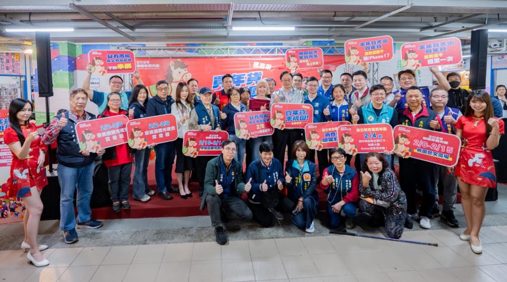 【大成報記者袁慧心/桃園報導】桃園市長張善政今(4)日上午前往桃園區,出席「2026桃園年貨大街開幕記者會」。張市長表示,市府今(115)年特別串聯全市14座公有傳統市場,匯集各市場特色,推出13款限量「年味福袋」,精選「桃園上好攤」及經濟部「樂活名攤」星等攤商商品,邀請市民朋友在農曆年前走進市場,一次購足兼具實惠與人情味的年節好物,感受道地的市場年味。