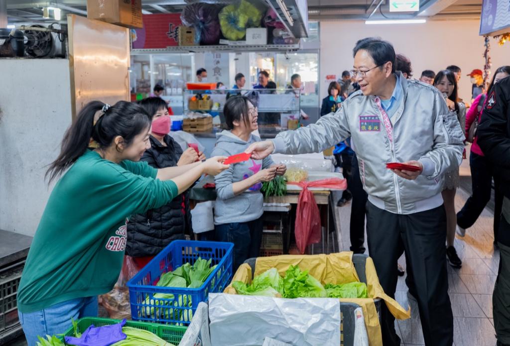 張市長說明,年味福袋每套商品價值約800元,將自明(5)日中午12點起於線上平臺以半價399元限量販售,民眾可依喜好選購心儀市場的特色商品,完成下單後再回到市場兌換,兼顧便利性與實體消費體驗,期盼讓市民買得划算、買得開心,也為市場攤商帶來實質人潮與買氣。