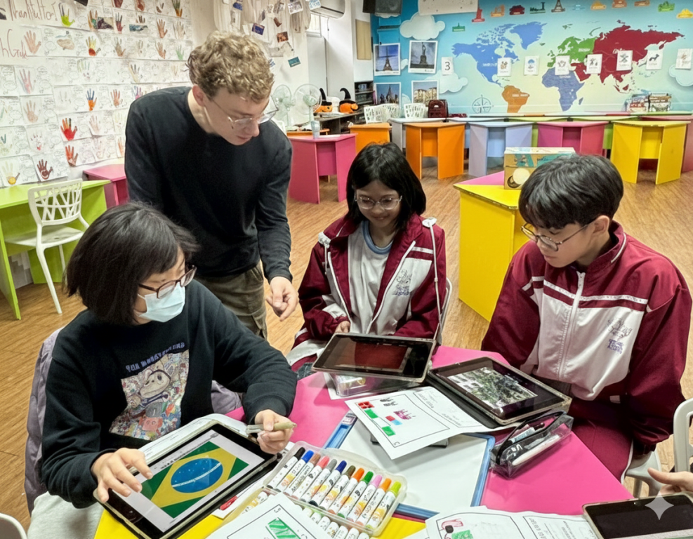 圖說:福營國中外師透過數位融入引導學生探索世界。