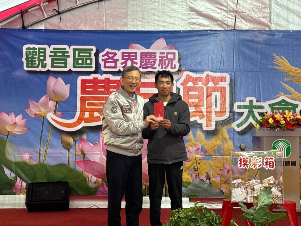 【大成報記者袁慧心/桃園報導】桃園市副市長王明鉅今(7)日出席「觀音區各界慶祝115年度農民節大會」,對農民辛勤耕耘給予最高肯定,並頒發「傑出青年農民獎」及「傑出專業農民獎」,肯定在地農民的努力與貢獻。