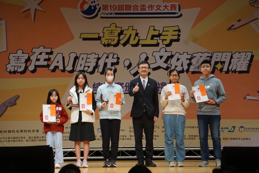 (大成報記者張玉玲/新北報導)第19屆聯合盃作文大賽全國總決賽頒獎典禮今(8)日下午在新北市政府3樓多功能集會堂登場。本屆賽事匯聚全國各地及星馬賽區共2,879名優秀學生參賽,涵蓋國小、國中及高中職六個組別;其中新北市共有210位同學晉級總決賽,展現深厚語文素養與書寫實力,在AI時代用文字走出自己的思考路徑。