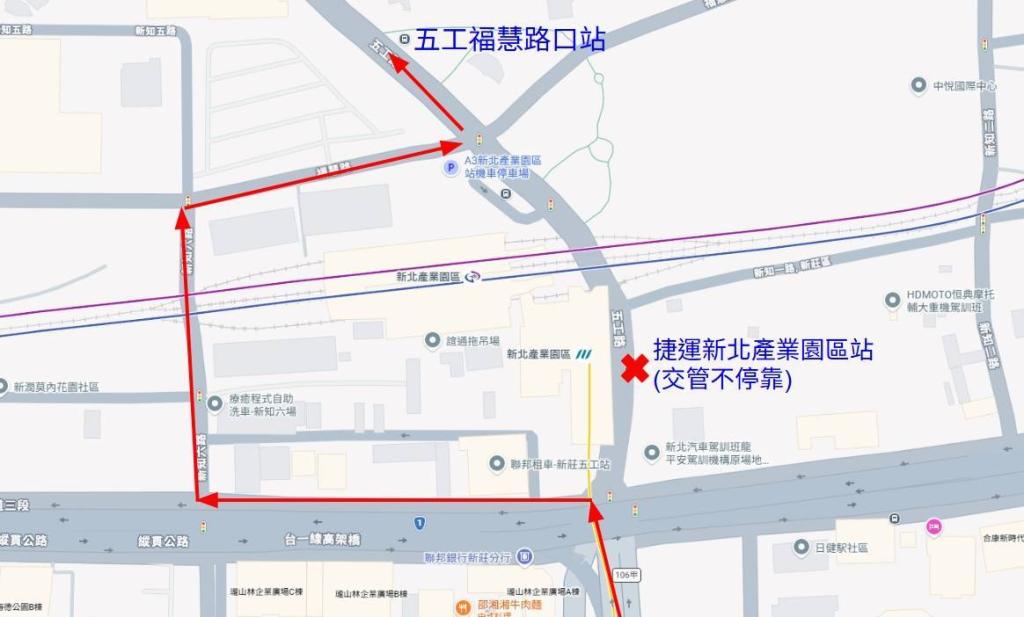 交通局指出,受五工路封閉管制影響, 582、835、959、982、橘17、橘21、F202等路線公車不停靠「新北產業園區站」,改道行駛,請乘車民眾往前至五工路上的「五工福慧路口站」候車,並請多加留意公車動態資訊。