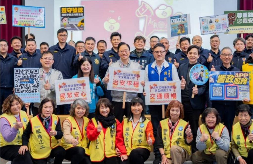 張市長指出,警察局與各民力大隊長期密切配合,攜手守護城市安全,使桃園屢次獲評為全國治安績優城市,社區治安績效更有目共睹,期勉警政與民力團隊持續深化合作,共同為城市發展與市民生活營造更優質、安定的治安環境。