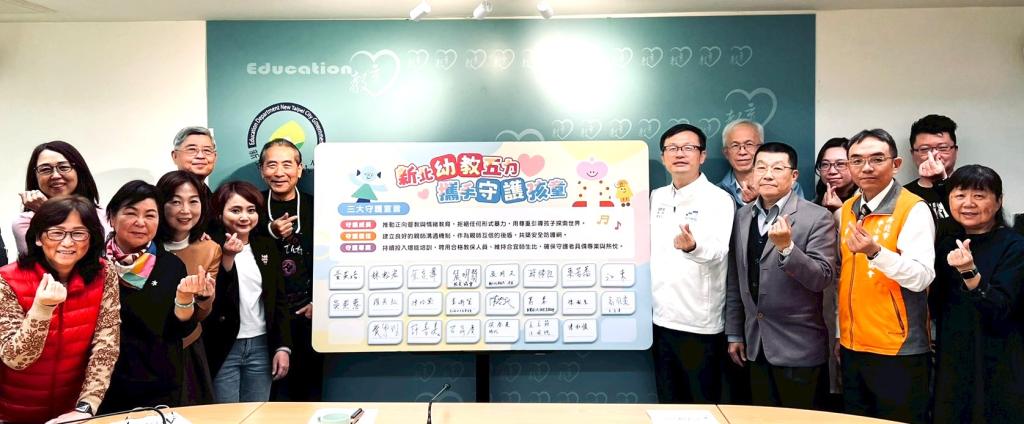 (大成報記者張玉玲/新北報導)為營造親師共好、互信的幼教環境,新北市教育局今(12)日邀集全市幼教集團與團體、家長會、教師會及校長協會,辦理「新北幼教五力共盟守護孩童」宣言簽署活動,凝聚「幼、教、家、校、市府」五方力量,宣示不當對待事件零容忍,並同步宣布推動數位化內部預警機制及監視系統補助政策,自115學年度起將幼兒園影像保存期限由現行14天延長至30天,共同守護幼童安全健康成長。