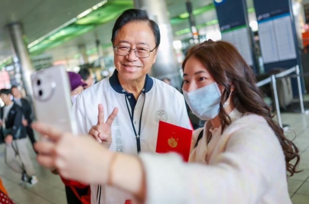 圖說: 張市長與旅客合影。( 圖/市府提供)