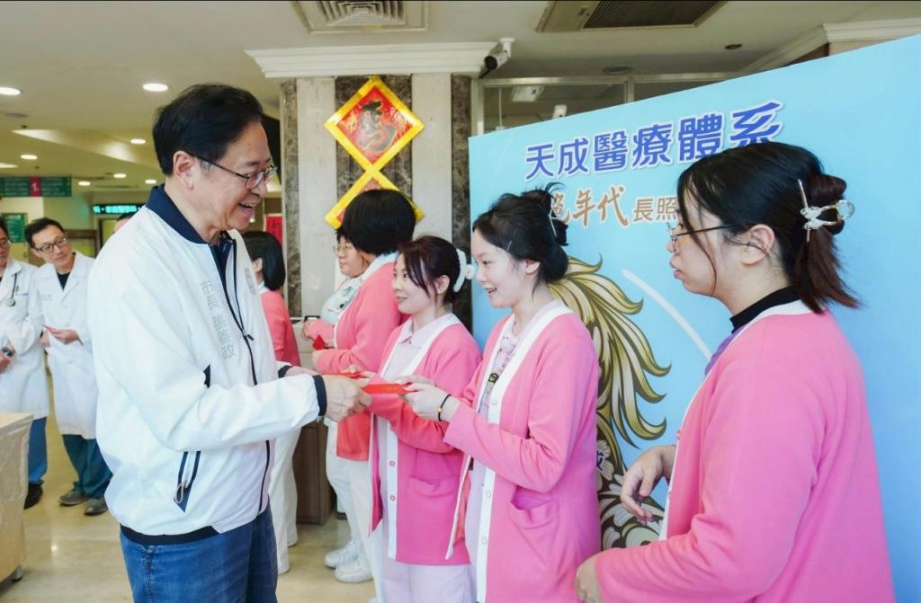 【大成報記者袁慧心/桃園報導】桃園市長張善政今(14)日下午分別前往衛生福利部桃園醫院、怡仁綜合醫院、天成醫院、聯新國際醫院及天晟醫院,慰勞春節期間堅守崗位的醫護同仁,並致贈禮盒與福袋。張市長表示,醫療體系是城市安全的重要支柱,感謝醫護同仁在春節期間仍堅守崗位,提供穩定且高品質的醫療服務,讓市民在年節期間安心無虞。