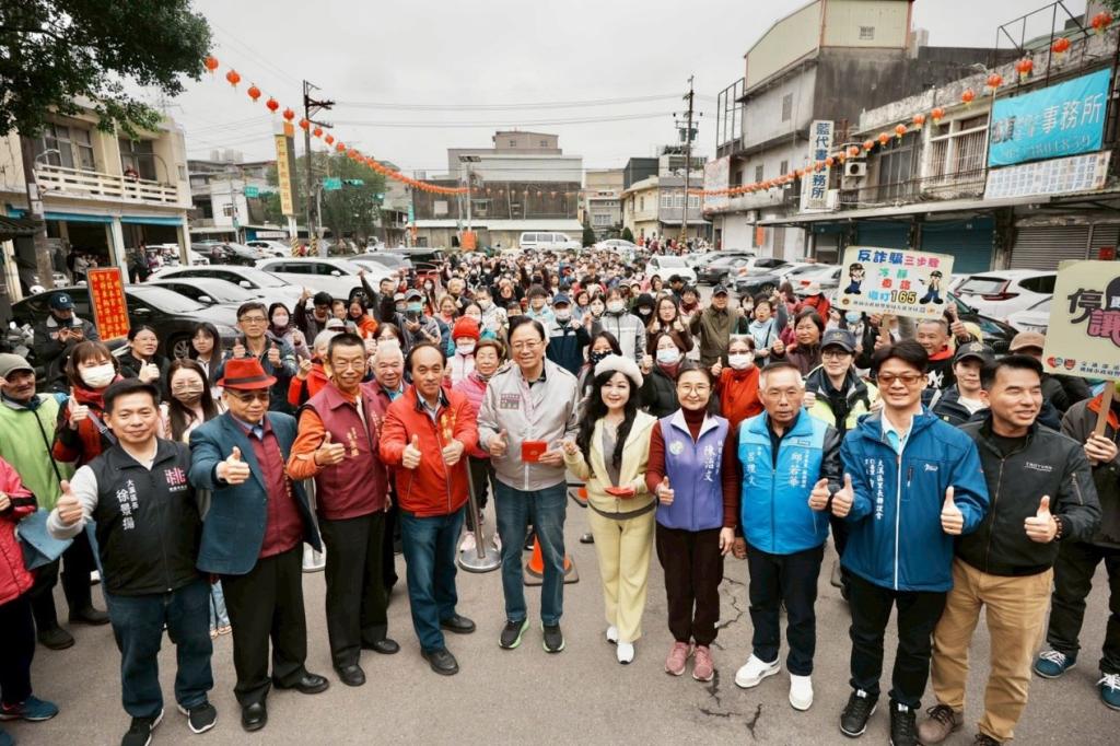 【大成報記者袁慧心/桃園報導】桃園市長張善政今(18)日分別前往平鎮三崇宮、褒忠祠、福林宮、龍潭龍元宮、大溪普濟堂、大溪仁和宮、桃園護國宮、蘆竹五福宮等宮廟參香祈福,發放「元氣搖搖馬」福袋。張市長表示,大年初二看到許多市民全家大小一同到宮廟走春,參拜人潮踴躍且年味十足,期盼在神明庇佑下,市民朋友在新的一年都能平安健康、闔家順心,市府也將持續推動各項市政建設與民生政策,帶領桃園邁向新里程。