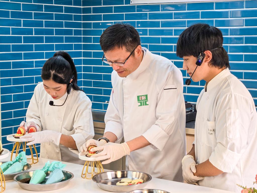 圖說:頂尖群科-淡水商工點心研發中心張明文局長與同學一起製作法式甜點馬卡龍。