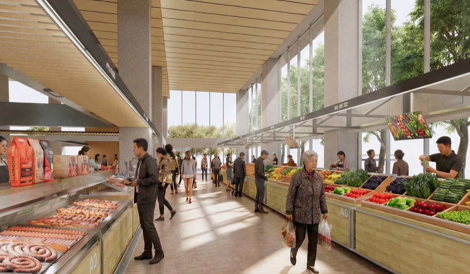張市長表示,新明市場重建後,市場部分將以新型態傳統市場為設計概念,兼顧環境品質與使用便利性,打造明亮整潔、功能完善的現代化市場空間,讓市民享有更優質的採買環境。張市長指出,臺北南門市場近年完成改建後展現嶄新風貌,新明市場未來也將朝類似方向發展,兼顧傳統市場活力與現代都市環境品質。