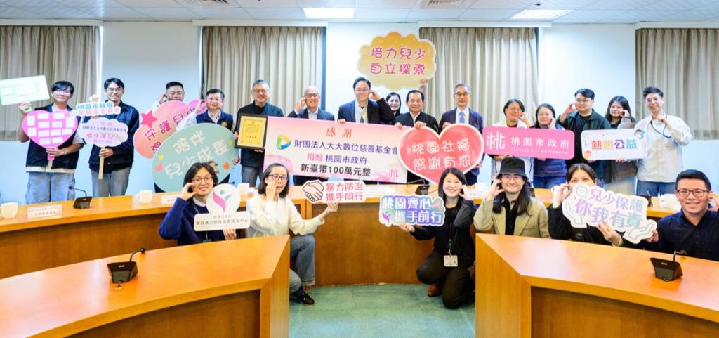 【大成報記者袁慧心/桃園報導】桃園市長張善政今(5)日下午於市府出席「財團法人大大數位慈善基金會捐贈儀式」。張市長表示,誠摯感謝大大數位慈善基金會長期深耕桃園、關懷弱勢兒少,今(115)年更將捐助金額擴大至120萬元。這筆善款將精準投入社會局家防中心與警察局少輔會,提供不幸環境中的青少年在人格發展的關鍵階段,能得到更多支持資源,協助其回歸生活正軌。市府也將妥善運用捐助資源支持第一線社工,發揮愛心最大效益,透過公私協力完善社會安全網。