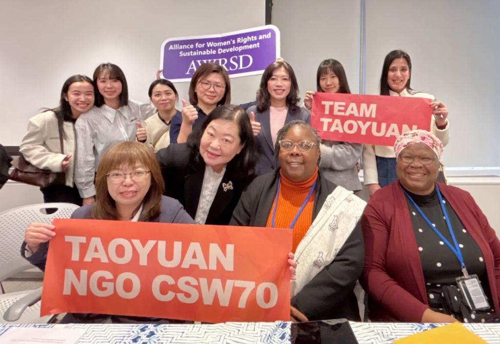 【大成報記者袁慧心/桃園報導】桃園市政府昨(11)日由婦幼發展局長杜慈容與青年事務局長侯佳齡率隊前往美國紐約,於「第70屆聯合國非政府組織婦女地位委員會論壇(NGO CSW70)」分享懷孕移工女性在臺灣面臨的權益與挑戰,並進一步探討全球與在地婦女經濟賦權議題。此次論壇邀請聯合國CEDAW委員會副主席Esther Eghobamien-Mshelia到場分享最新國際性別平權趨勢,並與辛巴威性別委員會(ZGC)執行長Virginia Muwanigwa、世界女青年會(YWCA)秘書長Casey Harden等國際重量級講者共同交流,探討女性在新興產業與數位經濟發展下的機會與挑戰。