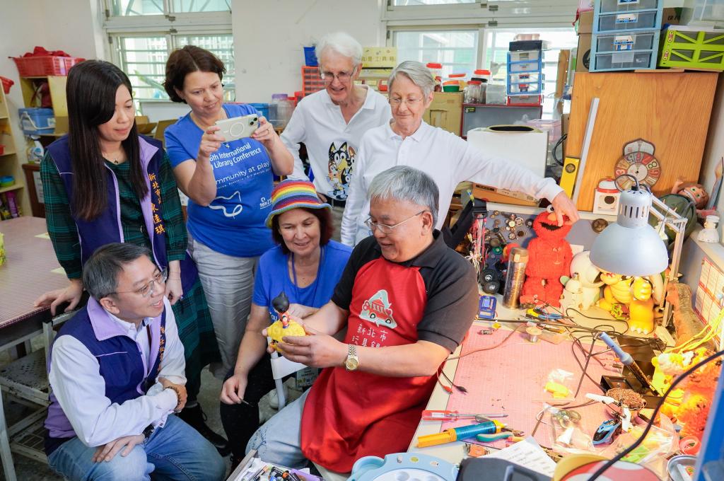 圖說:澳洲玩具圖書館總會訪新北玩具銀行 看到玩具醫生馬嘉宏 執行長 Debbie Williams(後排左2)立即拿出手機拍攝