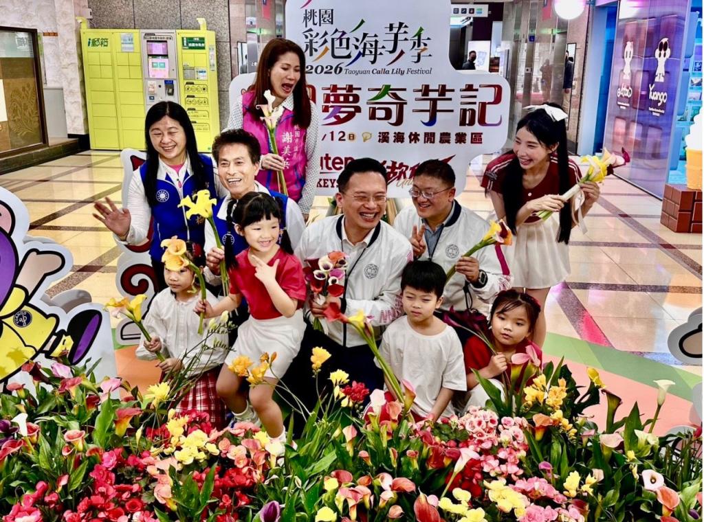 【大成報記者袁慧心/桃園報導】桃園市副市長蘇俊賓今(24)日下午出席「2026桃園彩色海芋季」活動。蘇俊賓表示,桃園彩色海芋季今年邁入第10年,展出規模創歷年新高,一共展出14個品種的彩色海芋,栽植數量也由去年的5萬株提升至6萬5千株,更特別與樂天桃猿合作,規劃多項亮點彩蛋,邀請市民把握花期前往大園賞花踏青,感受春日繽紛的花海景致。