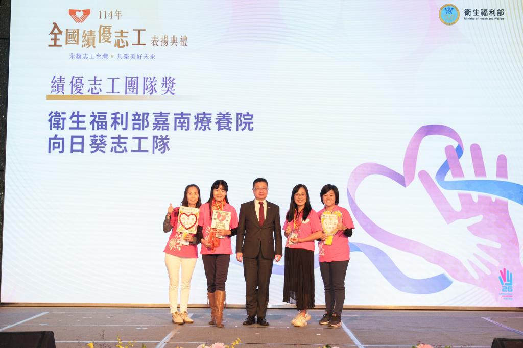【大成報記者于郁金/臺南報導】衛生福利部嘉南療養院長期推動志願服務,「向日葵志工隊」多年來深耕精神醫療領域,協助病友復健、促進社會參與,並積極推動精神疾病去污名化;屢次得到全國與地方肯定,充分展現其長期投身志願服務卓越成果。