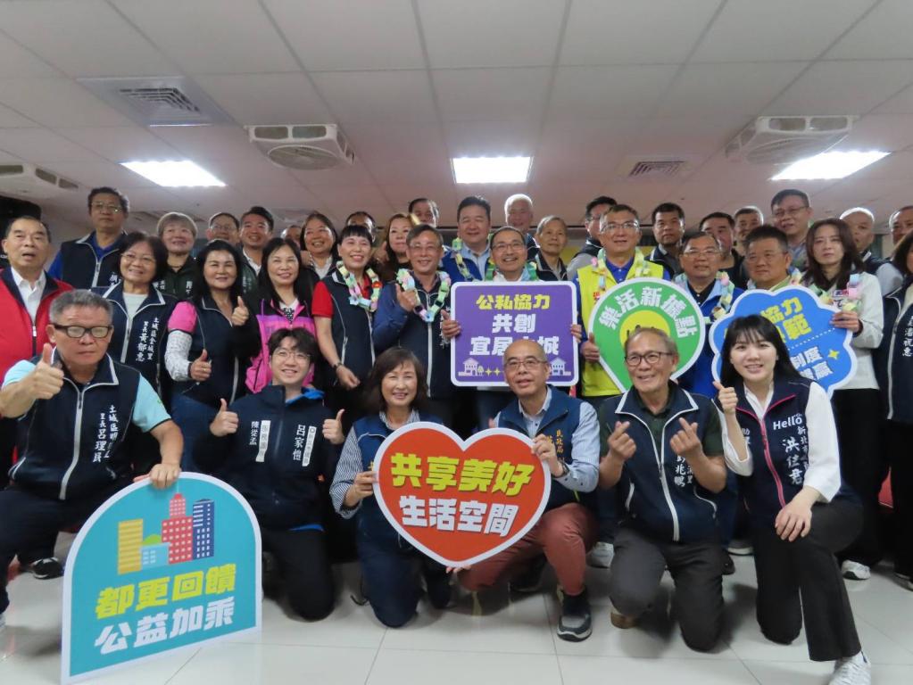 圖說:市長侯友宜與土城區里長及地方仕紳代表溫馨合影,共同見證這座服務周邊市民的休閒核心落成。