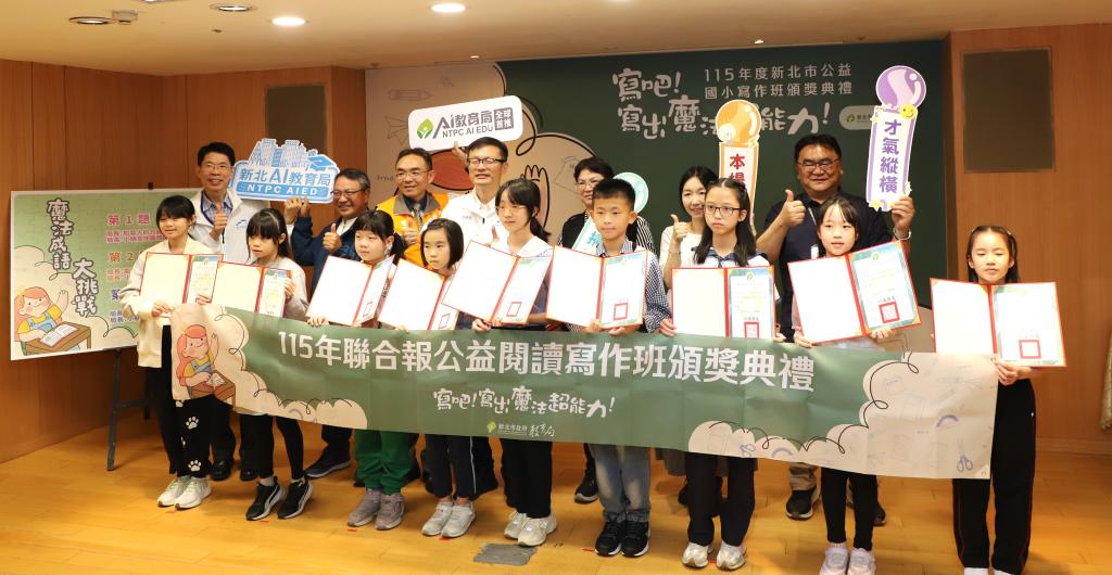 (大成報記者張玉玲/新北報導)用閱讀打開視野,用寫作展現創意。新北市教育局今(30)日舉辦「115年度國小公益閱讀寫作班頒獎典禮」,以「寫吧!寫出魔法超能力!」為主題,鼓勵孩子從閱讀中培養思考力,在寫作中展現觀察力、想像力與表達力。今年全市共有30所國小開設公益閱讀寫作班,吸引近千名學生參與,並從眾多作品中評選出特優、優選及佳作,展現學生豐富的創意與細膩的生活感受。