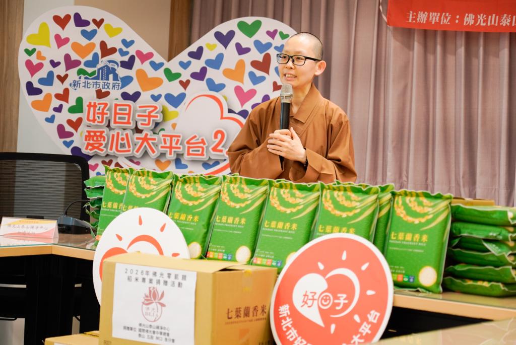 佛光山泰山禪淨中心如遠法師表示,佛光山秉持開山祖師星雲大師「人間佛教」精神,廣結大眾善緣,關懷社會、利益眾生,捐贈白米,一方面護持農民,另方面幫助需要的家庭,希望這份善念,能帶給社會溫暖。
