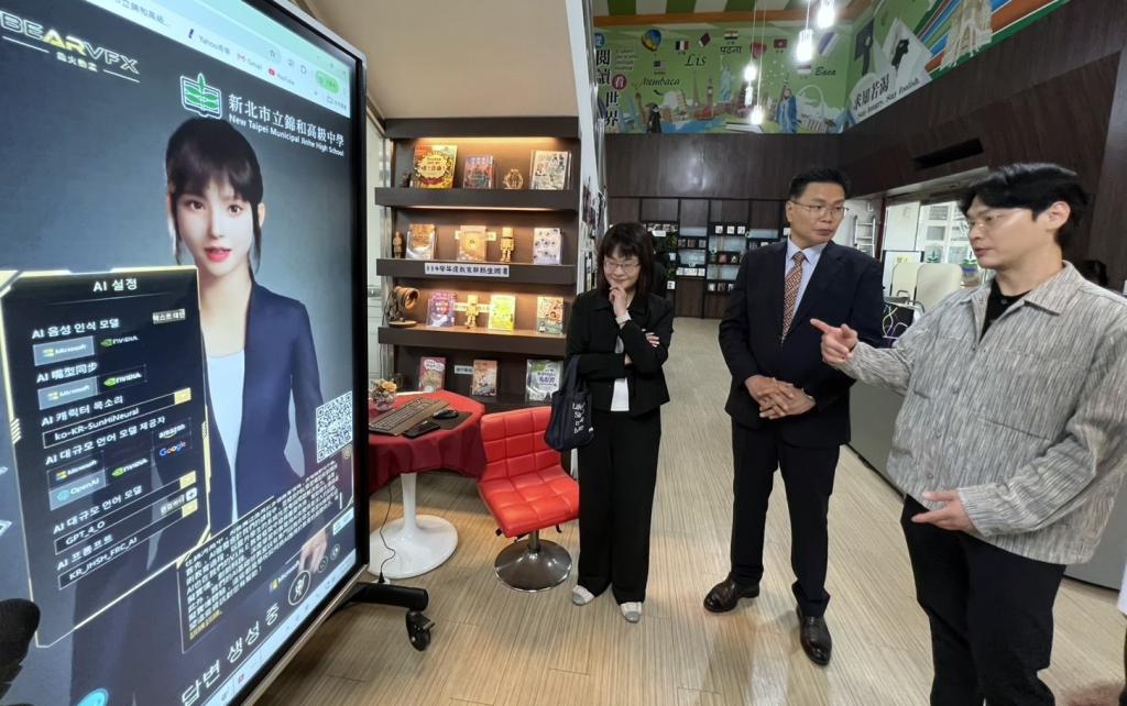 圖說:錦和高中AI虛擬人物具備多語翻譯與導覽功能,協助韓國貴賓認識錦和AI科技教育的推動成果。
