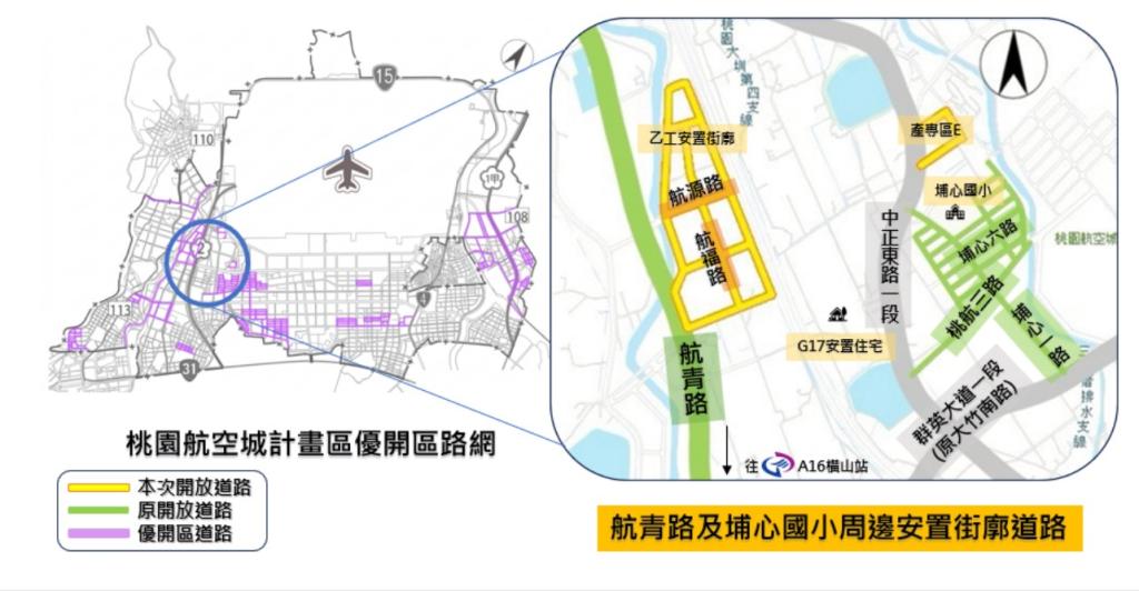 圖說: 航青路及埔心國小周邊安置街廓道路示意圖。(圖/桃市府工務局提供)