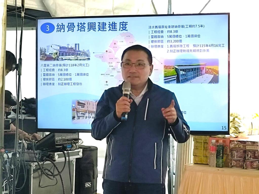 林耀長說,新北市近3年納骨櫃位平均每年使用量約1萬3,200個、祖先牌位約4,800個。為滿足民眾安奉及祭祀需求,市府積極盤點既有空間增設櫃位,並推動鶯歌、八里、淡水、五股及林口等5處納骨塔及環保葬區新建工程,預計於 117年起陸續完工後,可再提供約25萬4,100個櫃位及5.2萬個牌位。
