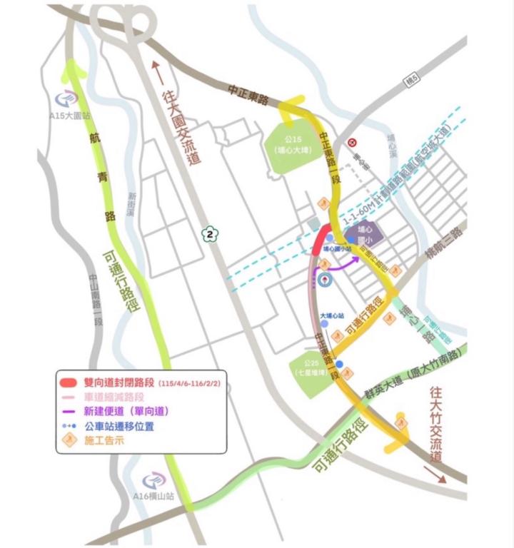 一、埔心一路口至桃航三路口區間,自115年4月6日起全天改道施工。