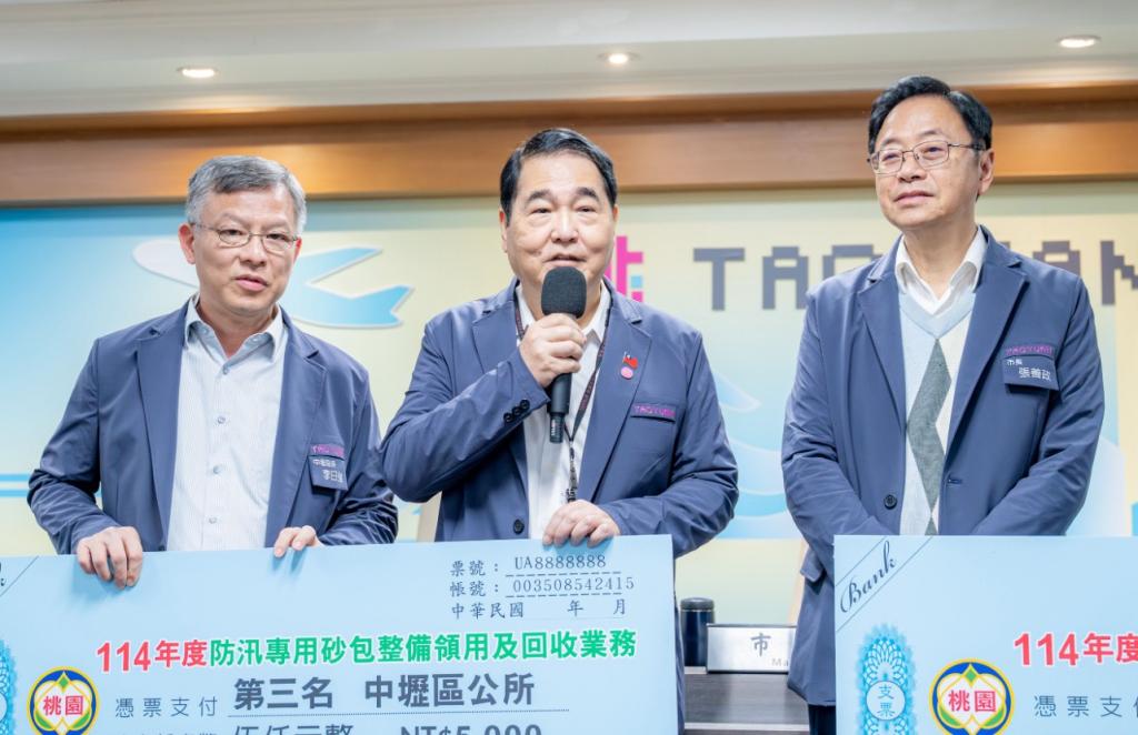 水務局表示,114 年回收績優前三名分別為:八德區公所(回收率 93.97%)、龍潭區公所(回收率 88.74%)及中壢區公所(回收率 71.45%)。為因應5月至11月汛期的強降雨挑戰,各區公所皆已備妥砂包供民眾領用,期許各公所持續強化回收效率,從源頭減少淹水風險,為市民打造安全永續的生活環境。