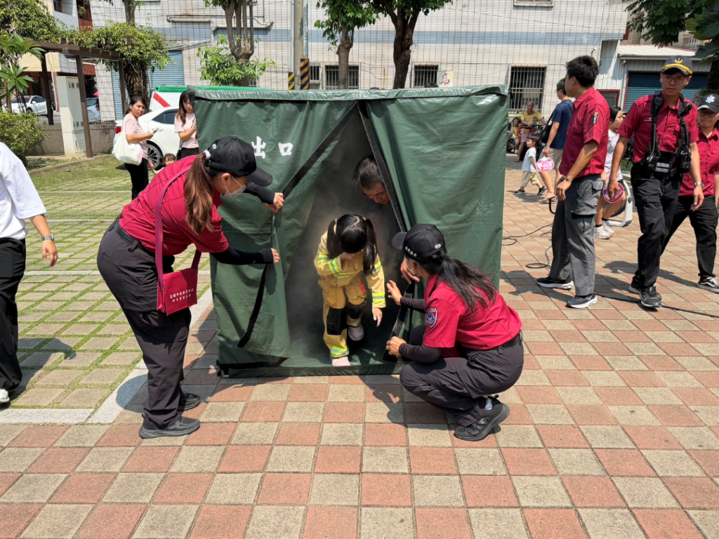 本次活動以「防火防災觀念從小培養」為核心,現場精心規劃多項闖關體驗與宣導內容,包括煙霧避難演練、消防衣穿著體驗及射水操作等,讓孩子們親身參與、加深印象。同時結合親子共同學習,不僅提升孩童的防災意識,也促進家庭對於消防知識的重視。活動尾聲透過有獎徵答帶動氣氛,現場互動熱烈,笑聲不斷。