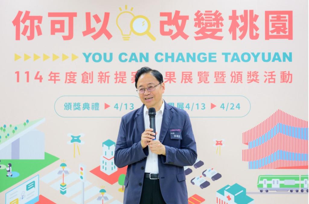 【大成報記者袁慧心/桃園報導】桃園市長張善政今(13)日下午於市府1樓川堂,出席「114年度桃園市政府創新提案表揚暨靜態展覽」,表揚各局處優秀創新成果。張市長表示,桃園推動智慧治理邁入第4年,已獲逾50座國內外大獎之肯定,顯示整體推動方向與執行成效逐步展現,期勉市府同仁持續在各自的業務上發想創新,讓桃園往國際智慧城市的標竿邁進。