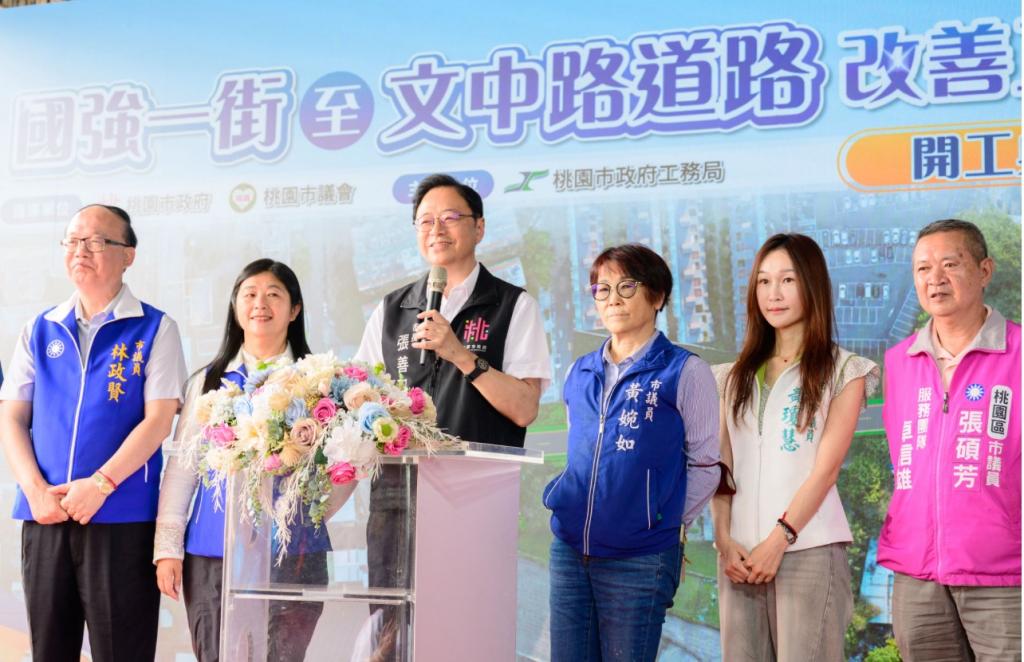 【大成報記者袁慧心/桃園報導】桃園市長張善政今(14)日上午前往桃園區,出席「桃園區國強一街至文中路道路開闢工程動土典禮」。張市長表示,本案工程總經費約7,700萬元,施工期約9個月,預計於明(116)年1月完工通車。完工後將串聯國強一街、文中路及周邊上海路、龍安街路網,改善當地壅塞情形,提升整體交通通行效率。