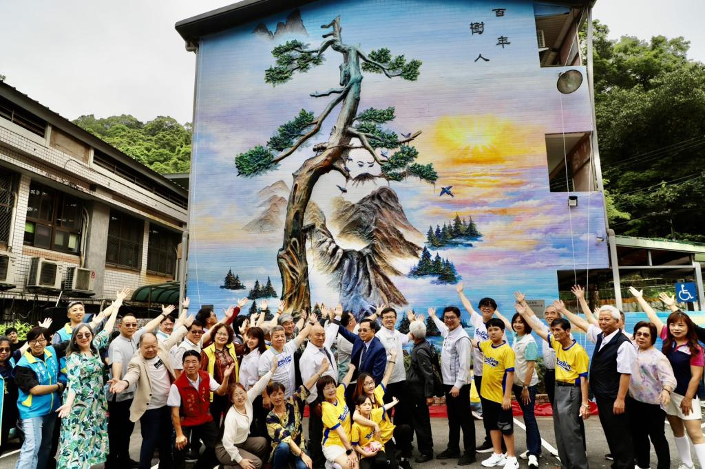 圖說:校慶活動最大亮點為「百年樹人」泥畫牆揭幕儀式,整體創作以楠木為主軸,傳達「教育如樹、孕育未來」的理念,並結合臺灣藍鵲等在地生態元素。