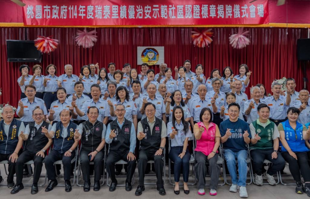 警察局表示,市府每年辦理「桃園市績優治安示範社區認證標章」,評核內容涵蓋警政、社政及消防三大面向,並就隊務運作、防災準備、婦幼安全維護及犯罪協防等項目進行綜合評比,期望藉此強化社區安全維護機制,為市民提供更安全、穩定的居住環境。