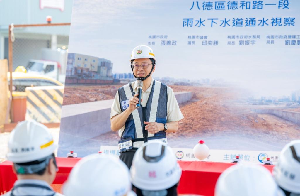 【大成報記者袁慧心/桃園報導】桃園市長張善政今(20)日上午前往八德區,出席「八德區德和路一段雨水下水道工程通水儀式」。張市長表示,本案工程提前3個月完工,趕在汛期及梅雨季來臨前順利通水,將可立即發揮防洪效益。該工程總經費約2億元,受益面積近150公頃,受益人口逾1萬人,充分展現「小工程、大效益」的具體成果。