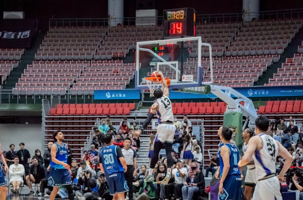 圖說:雲豹球員強勢灌籃得分 。( 圖/市府提供)