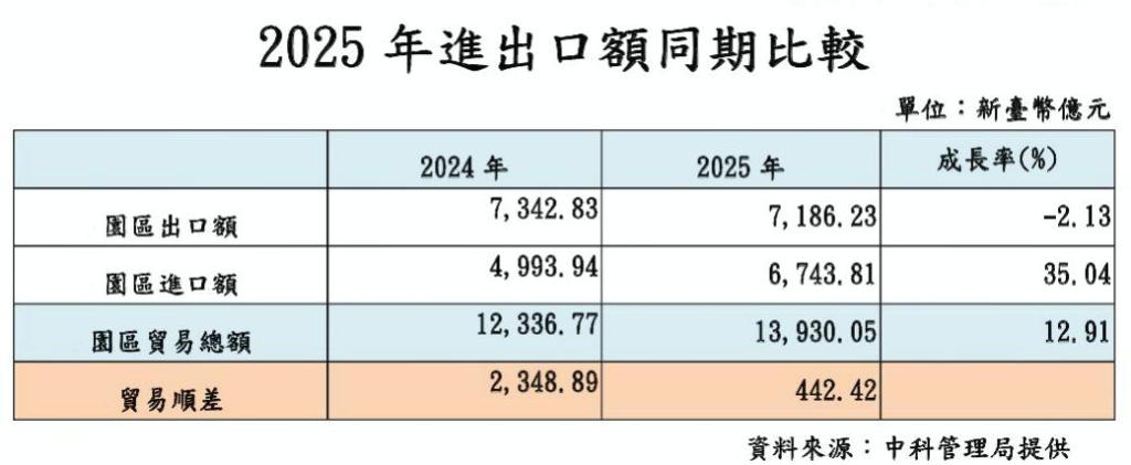 受惠AI相關應用持續增加,中科園區2025年營業額達1.13兆元,較2024年成長9.29%,為歷年次高。2025年貿易總額逾1.39兆元,為歷年最高,較2024年成長12.91%。另就業人數達61,901人再創新高,較2024年底增加6,239人,成長逾11.2%。